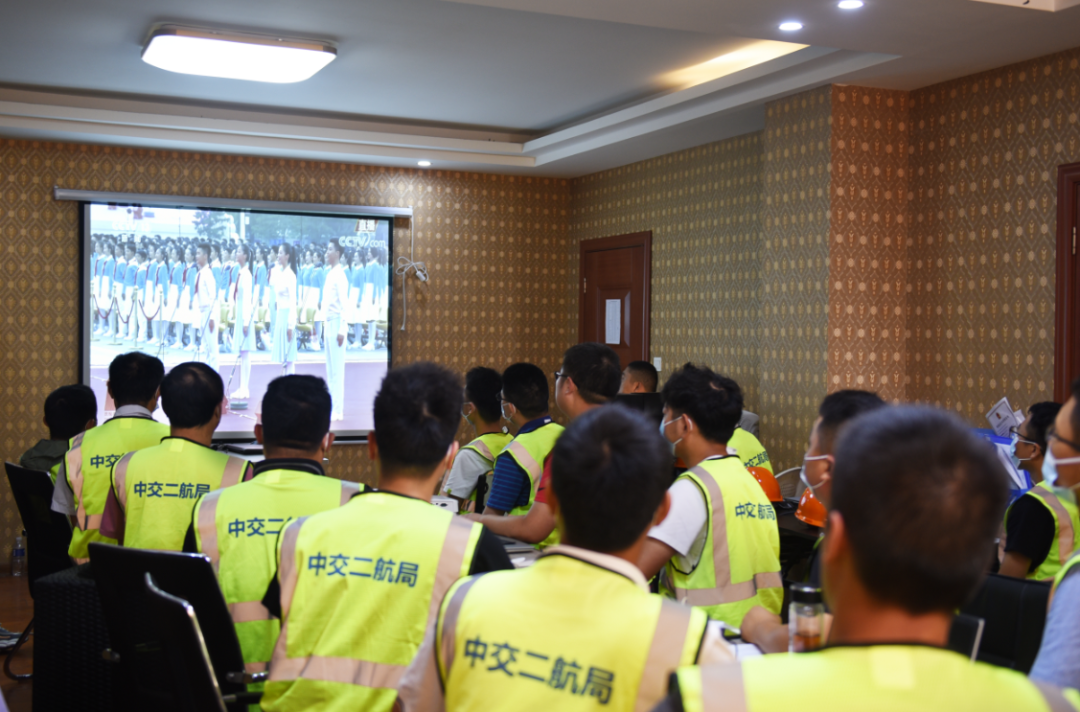 ▲徐淮路改造工程項目部人員收看大會現場直播