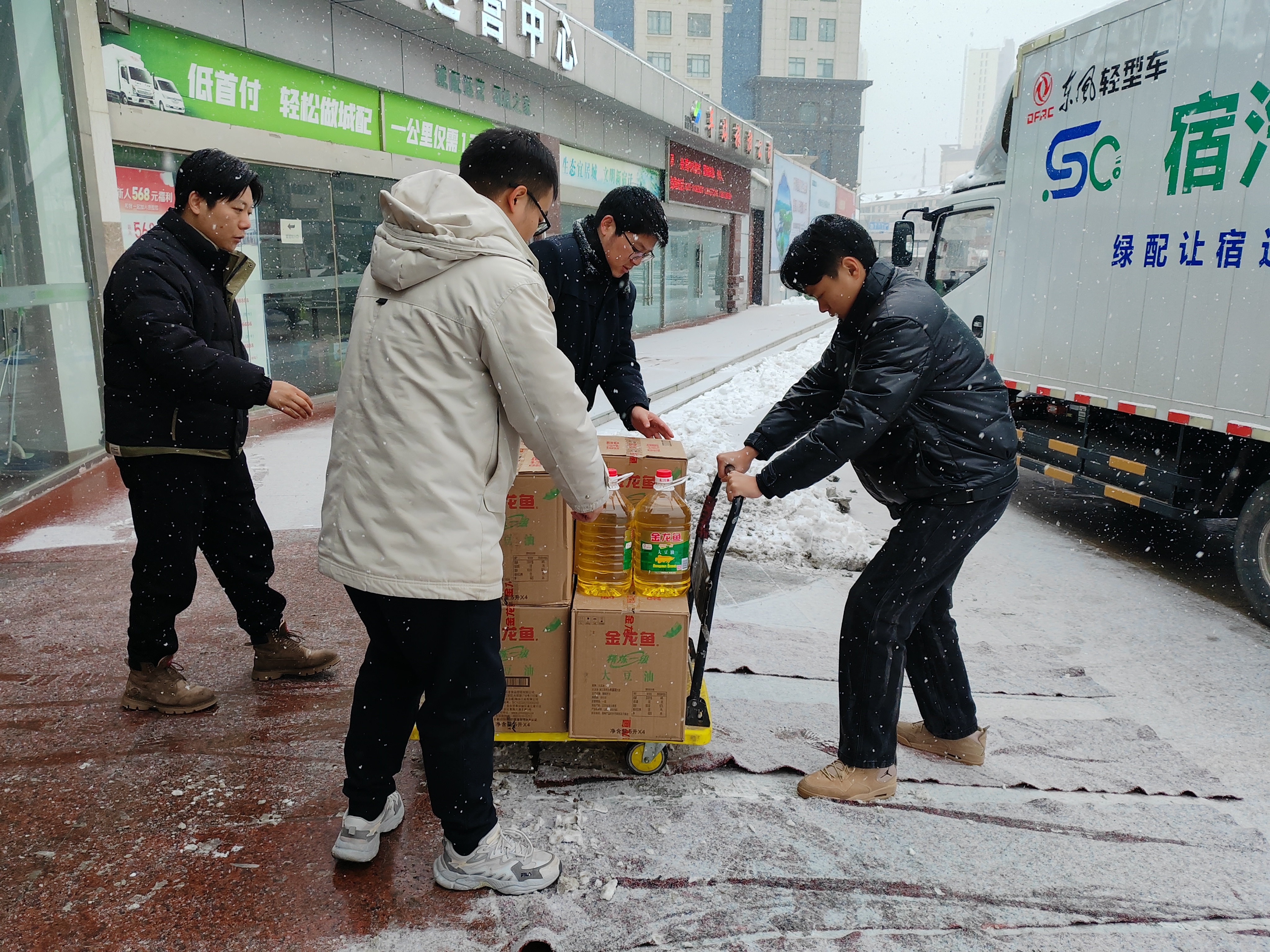2月4日,新一輪強降雪來襲為做好冬季惡劣天氣物資保障工作宿汽鴻雁快貨物流公司頂風冒雪暢通物流貨運保障大通道