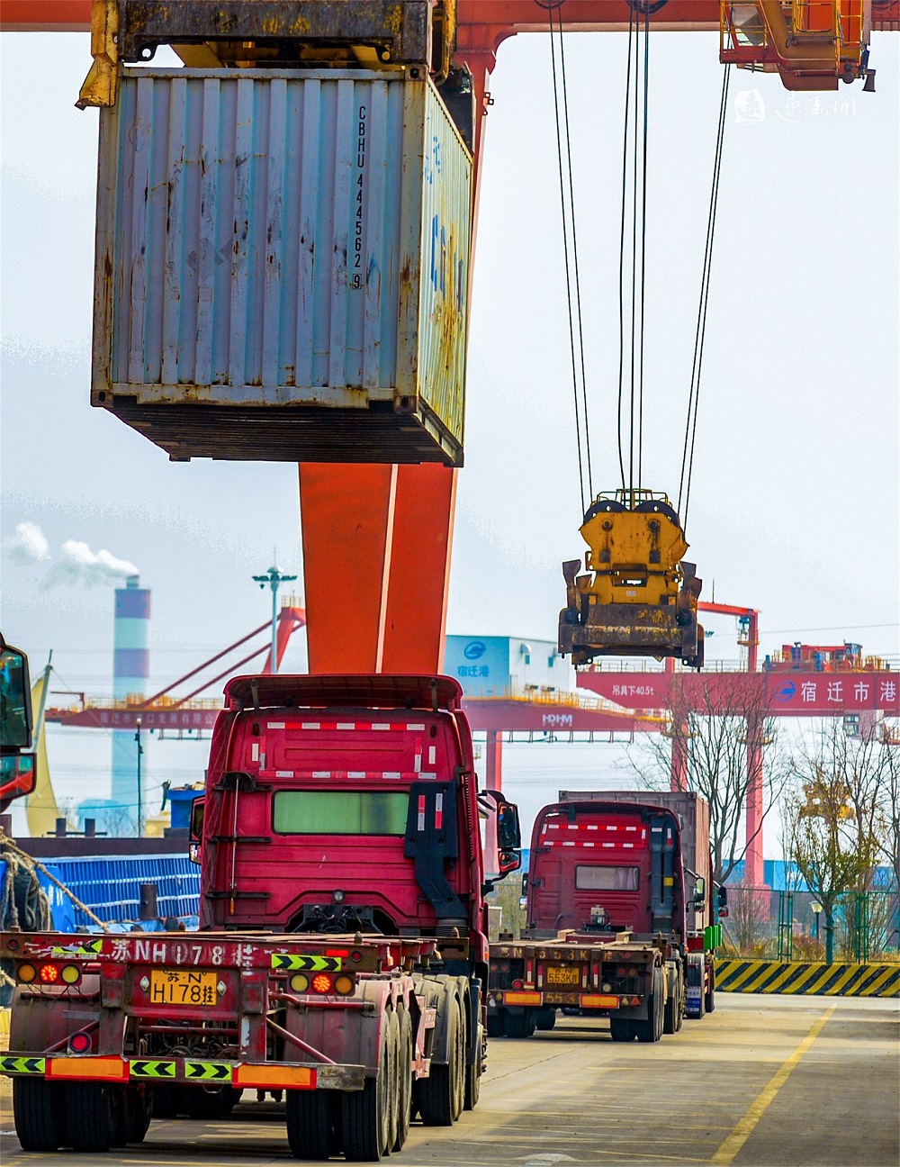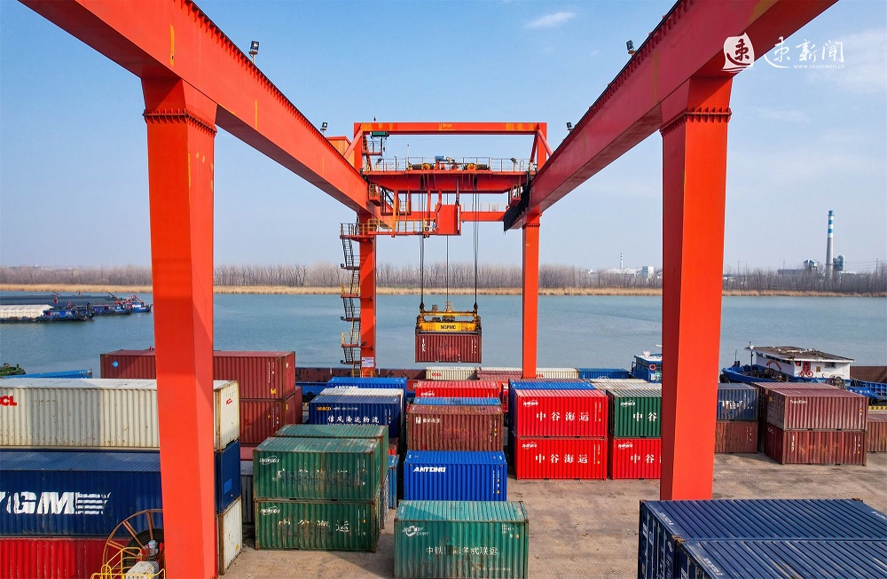 2月18日,在運河宿遷港集裝箱碼頭,工人們正在有序作業(yè),運輸車輛來回穿梭,起重機正在緊張地裝卸貨物,力爭龍年“開門紅”。