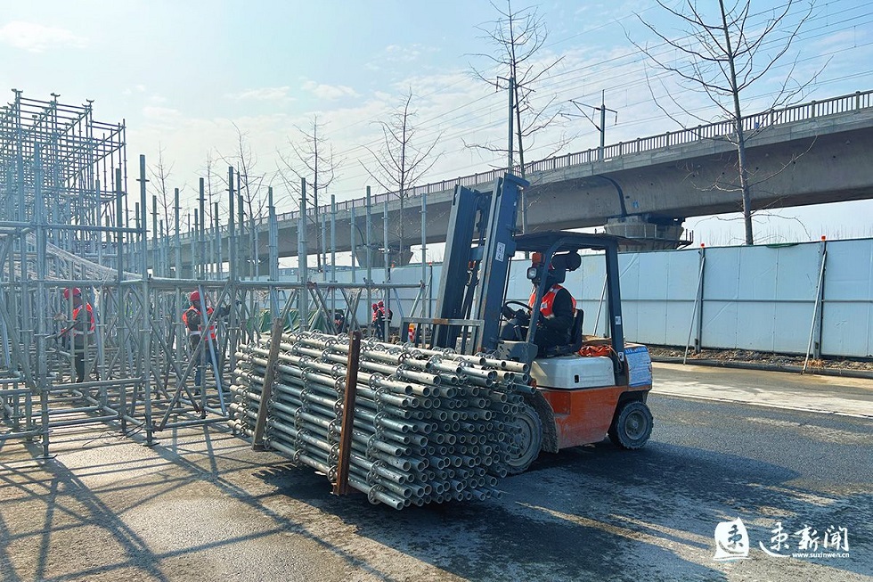 “我們工人大部分是外地的,目前已陸續(xù)返崗復(fù)工。”宿遷市港城路上跨鐵路專用線橋梁工程施工單位現(xiàn)場(chǎng)負(fù)責(zé)人介紹,今天上午六點(diǎn)多就開工了,大家齊心協(xié)力、分工協(xié)作,正在同步開展現(xiàn)澆箱梁預(yù)應(yīng)力張拉和支架搭設(shè)。