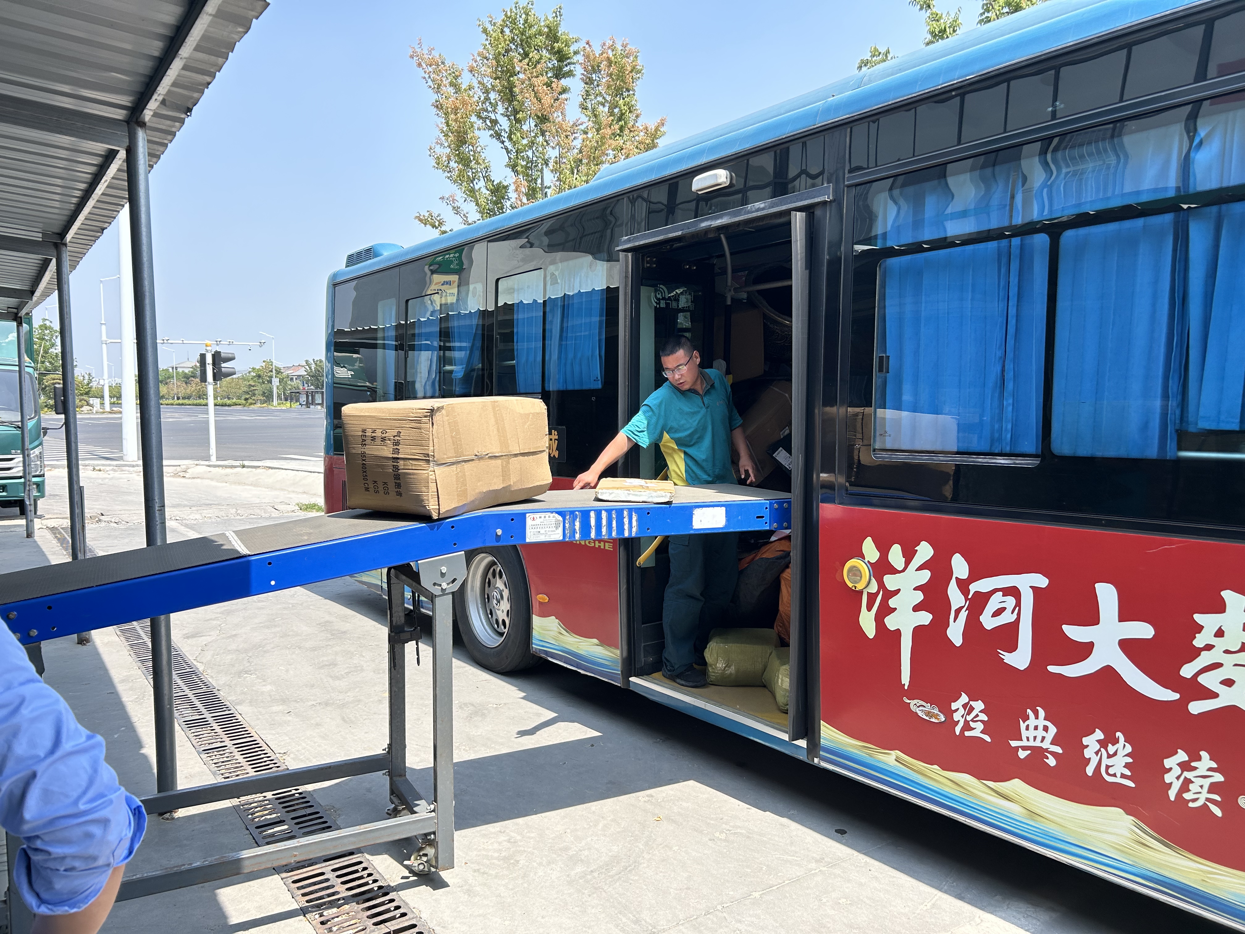 當(dāng)日,在宿遷市宿城區(qū)寄遞物流共配中心,傳送帶上郵件有序流轉(zhuǎn),工作人員細(xì)致清點包裹,一派熱火朝天的景象。與往日不同的是,承擔(dān)運(yùn)輸任務(wù)的由郵政貨車變成了公交車。