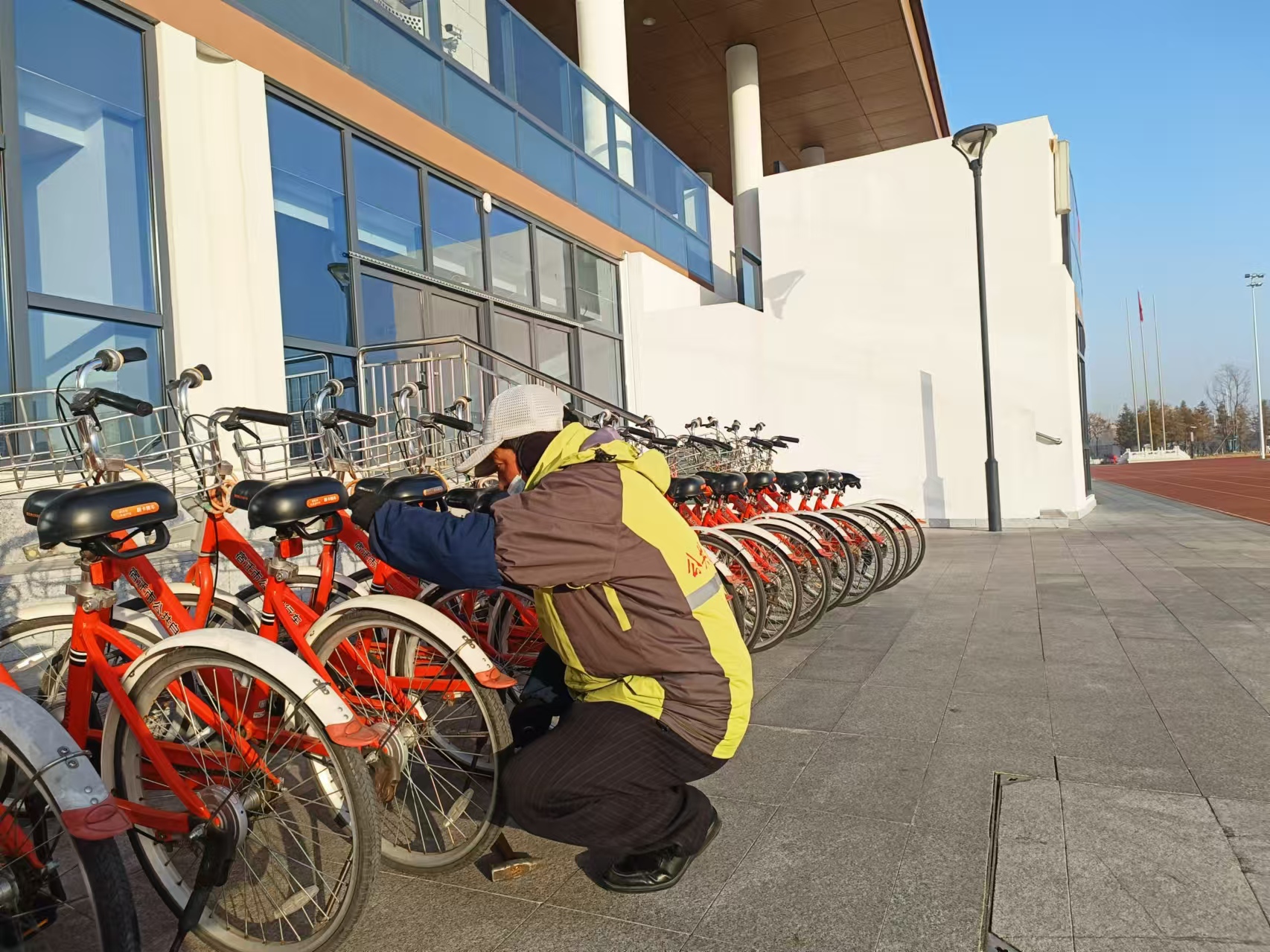 在活動(dòng)籌備階段,交通科技工作人員對參與活動(dòng)的自行車進(jìn)行了細(xì)致的檢查,并清潔車輛,以確保參賽者的騎行安全和舒適性。賽前,所有活動(dòng)用的自行車被統(tǒng)一運(yùn)送至比賽場地,并安排了專門的保障人員現(xiàn)場維保,以確保賽事順利進(jìn)行。