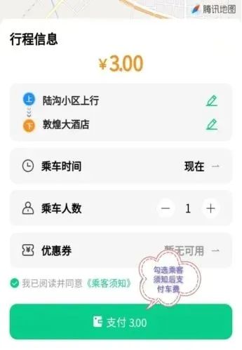 ④勾選我已閱讀并同意《乘客須知》、《購(gòu)票須知》后完成支付,在上車點(diǎn)等候上車。