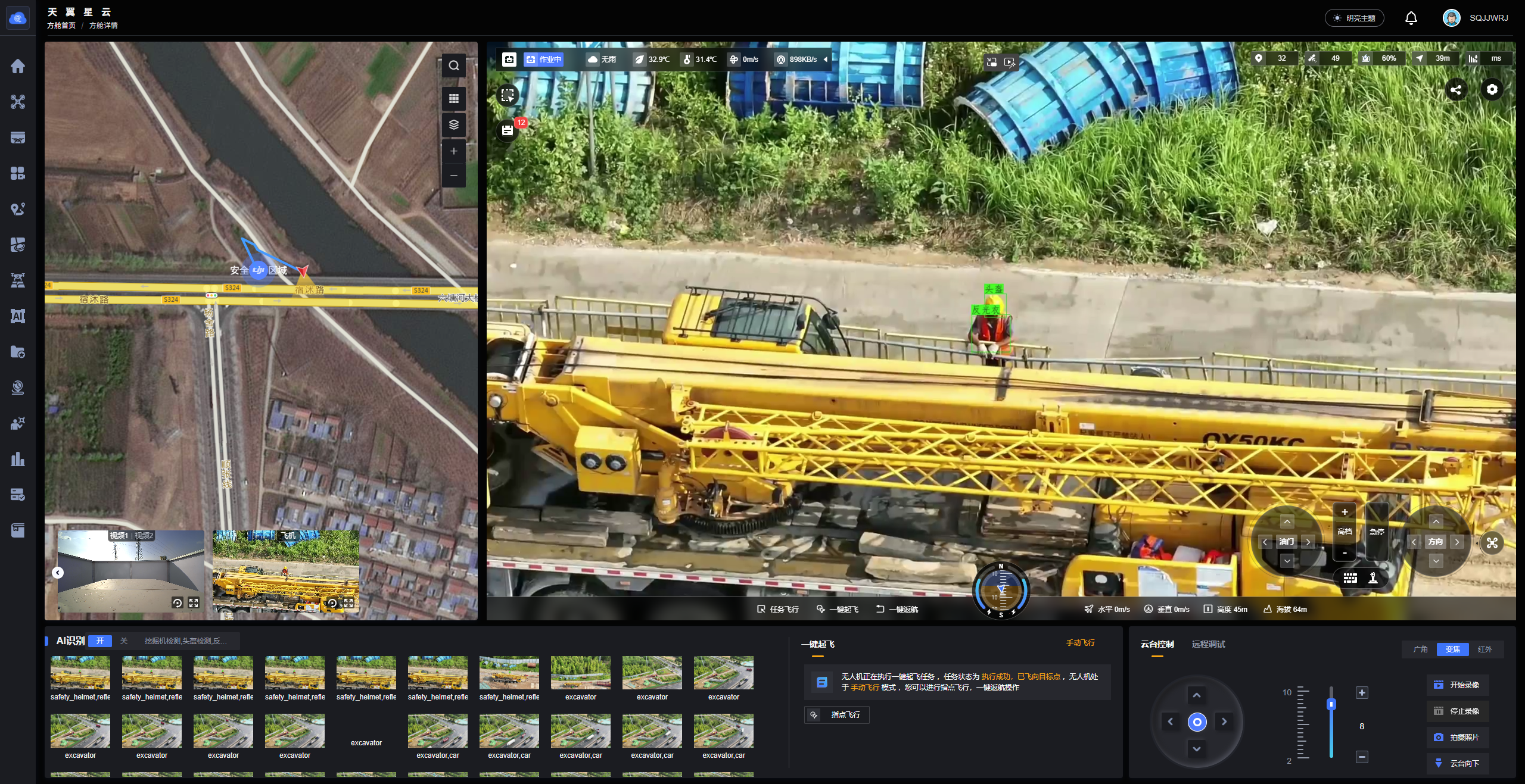 以宿遷大道快速化改造工程3標(biāo)為例,在某個(gè)普通的清晨,一架無人機(jī)正常起飛巡檢,它一路攀升到60米高空,項(xiàng)目施工進(jìn)度、安全生產(chǎn)等情況全都被高清鏡頭“收入囊中”,化作實(shí)時(shí)數(shù)據(jù)流,飛速傳輸?shù)绞屑?jí)飛控平臺(tái)里,利用內(nèi)置AI算法自動(dòng)識(shí)別隱患行為,并自動(dòng)標(biāo)記位置、推送預(yù)警、督促整改,形成全鏈條管理閉環(huán)?,F(xiàn)在15分鐘就能完成6公里路段的高效巡航,效率比人工快了30倍。
