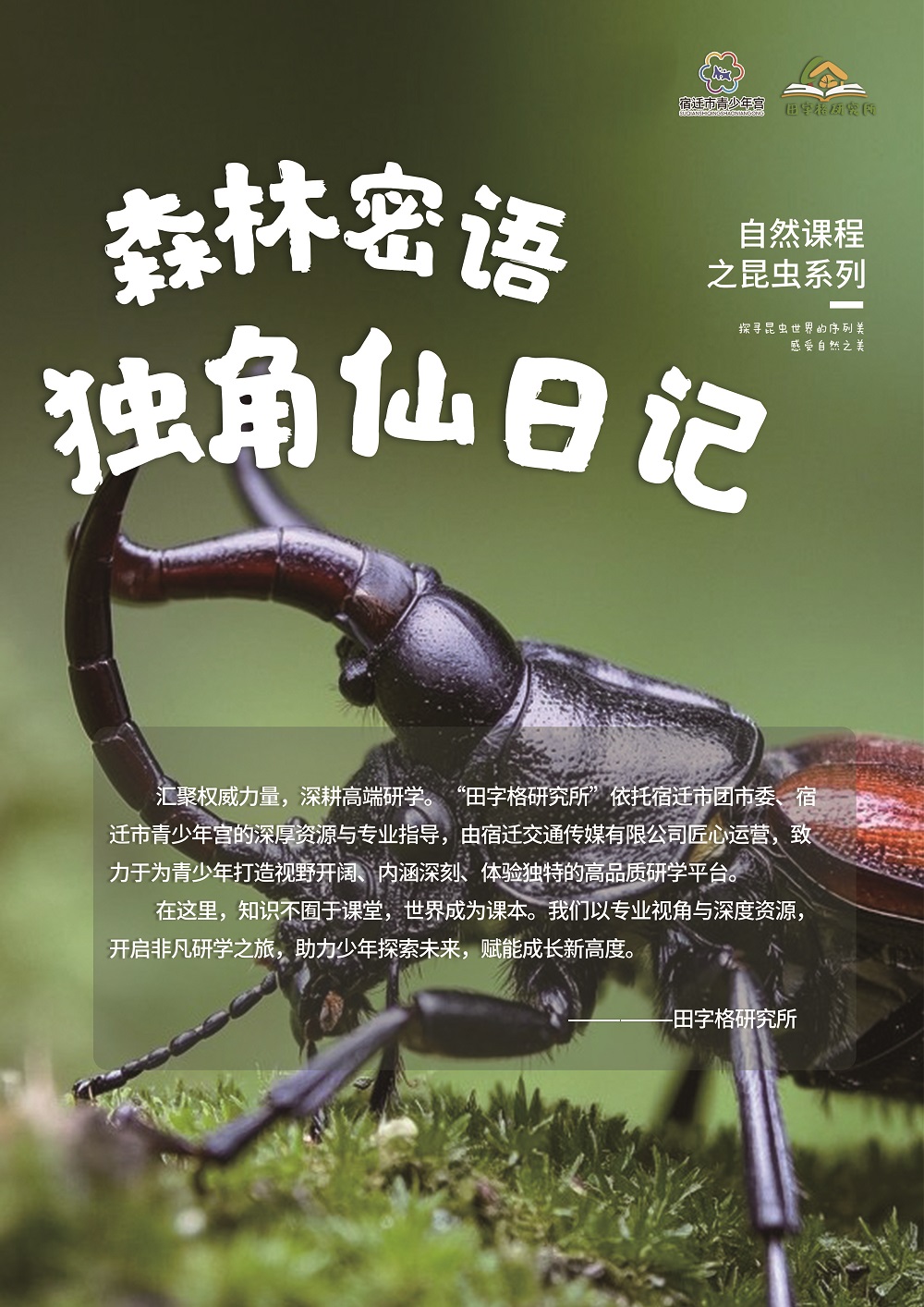 田字格研究所聯(lián)合宿遷市青少年宮,重磅推出第一期研學(xué)營(yíng)——獨(dú)角仙日記。