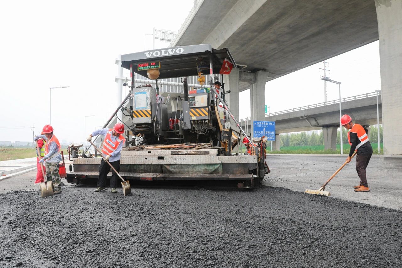 【宿遷交建】沖刺全線通車目標(biāo)!宿遷交建全速推進(jìn)酒都路3標(biāo)項(xiàng)目瀝青攤鋪