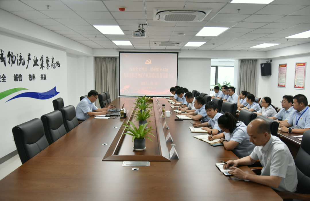 7月6日下午,宿遷交通集團(tuán)黨委副書記周斌以《汲取黨史智慧,增強(qiáng)服務(wù)本領(lǐng),為推進(jìn)宿遷物流產(chǎn)業(yè)高質(zhì)量發(fā)展貢獻(xiàn)力量》為題為通湖物流園黨員干部職工及機(jī)場公司黨支部全體黨員上了一堂黨史學(xué)習(xí)教育專題黨課。