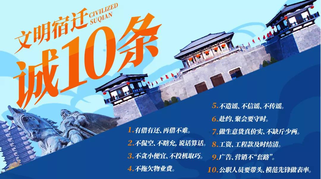 文明是宿遷最美麗的風(fēng)景。2017年,以全國第一的成績摘得全國文明城市桂冠,去年,以全國第二的成績通過復(fù)查,市區(qū)社會文明程度連續(xù)五年位居全省第一,文明已經(jīng)浸潤到城市的街頭巷尾、融入到鄉(xiāng)村的每個角落,“宿遷文明20條”“人情新風(fēng)宿9條”“禮讓斑馬線”等,已經(jīng)成為宿遷新風(fēng)尚。誠信是宿遷最寶貴的財富。我們是全國首批社會信用體系建設(shè)示范城市,城市信用監(jiān)測綜合水平保持全國前列,政務(wù)誠信良好、商務(wù)誠信優(yōu)質(zhì)、社會誠信一流,構(gòu)建了“一處失信、處處受限”的信用懲戒大格局,信用綜合考評連續(xù)6年進入省第一方陣。我們始終秉持一諾千金,只要承諾的,都會堅定不移兌現(xiàn),決不找借口、決不打折扣,確保各項優(yōu)惠政策及時、足額落實到位。
