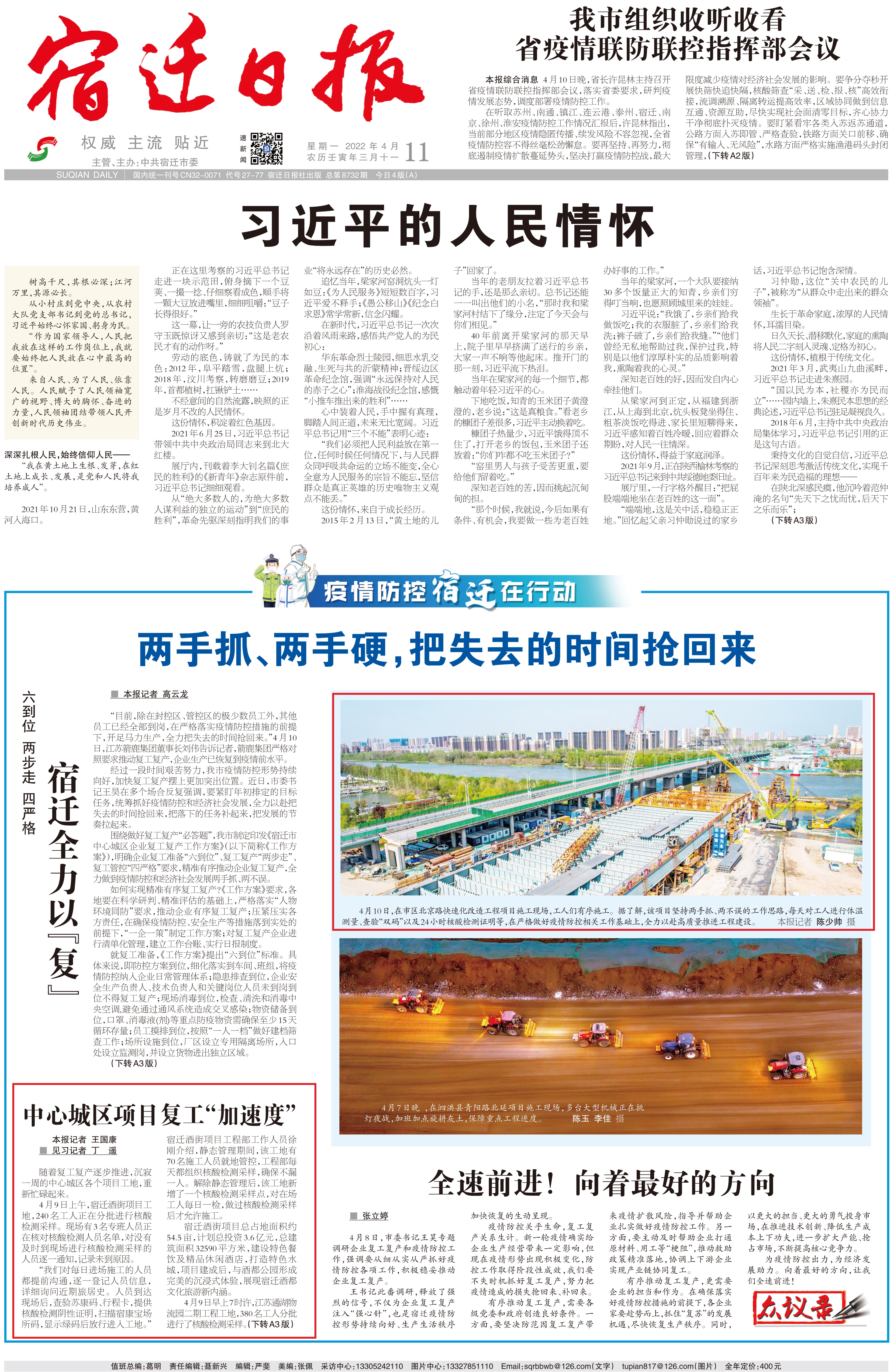 4月11日,《宿遷日報》頭版《疫情防控宿遷在行動》專欄聚焦宿遷交通集團重點工程項目復(fù)工復(fù)產(chǎn)情況。報道如下: