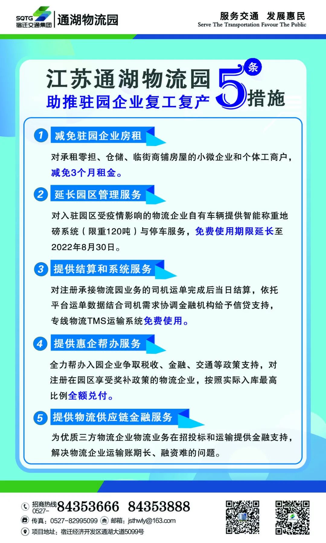 為積極應(yīng)對(duì)新冠肺炎疫情影響,近日,通湖物流園迅速響應(yīng)市委、市政府相關(guān)惠民措施,推出“惠企五條措施”,通過(guò)減免駐園企業(yè)房租、延長(zhǎng)園區(qū)管理服務(wù)、提供結(jié)算和系統(tǒng)服務(wù)、提供惠企幫辦服務(wù)、提供物流供應(yīng)鏈金融服務(wù),助推駐園企業(yè)復(fù)工復(fù)產(chǎn)。