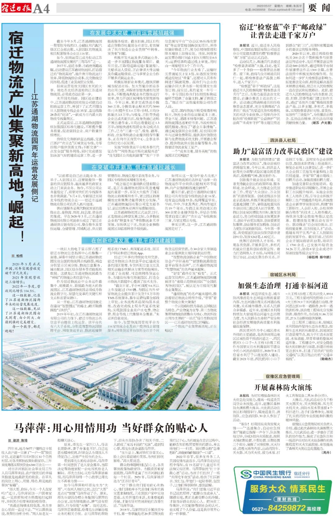 5月7日,宿遷日?qǐng)?bào)以《宿遷物流產(chǎn)業(yè)集聚新高地,崛起!——江蘇通湖物流園運(yùn)營(yíng)兩年發(fā)展側(cè)記》為題,展現(xiàn)了通湖物流園運(yùn)營(yíng)兩年以來(lái)由無(wú)到有、由小到大、由弱到強(qiáng)的完美嬗變。