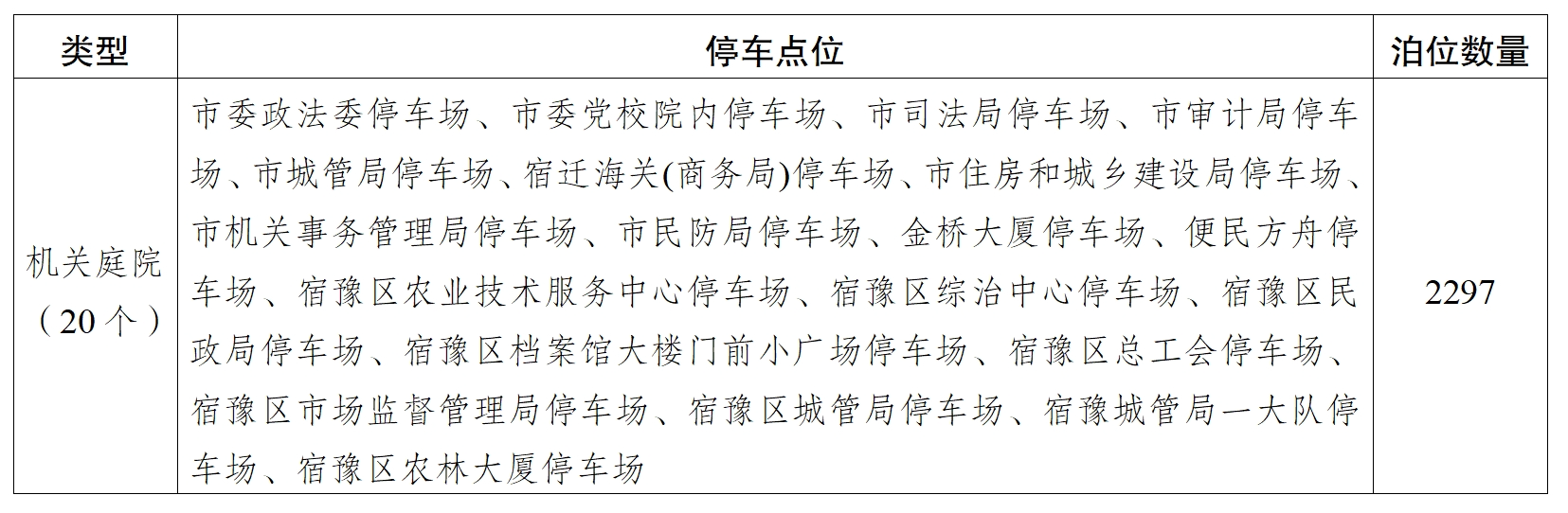 涉及20個(gè)機(jī)關(guān)庭院、2297個(gè)停車泊位