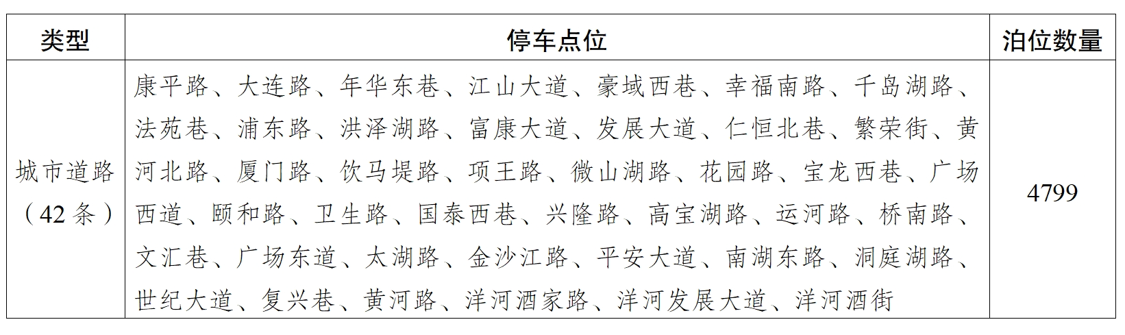 涉及42條道路、4799個(gè)停車泊位