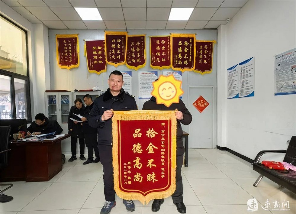 還是這一天,市民肖先生將一面寫有“拾金不昧 品德高尚”字樣的錦旗送到了108路公交車駕駛員施文學(xué)的手上,并不斷向他表示感謝。“謝謝108路公交車駕駛員施先生,如果不是他,這筆錢可能就找不回來了。”