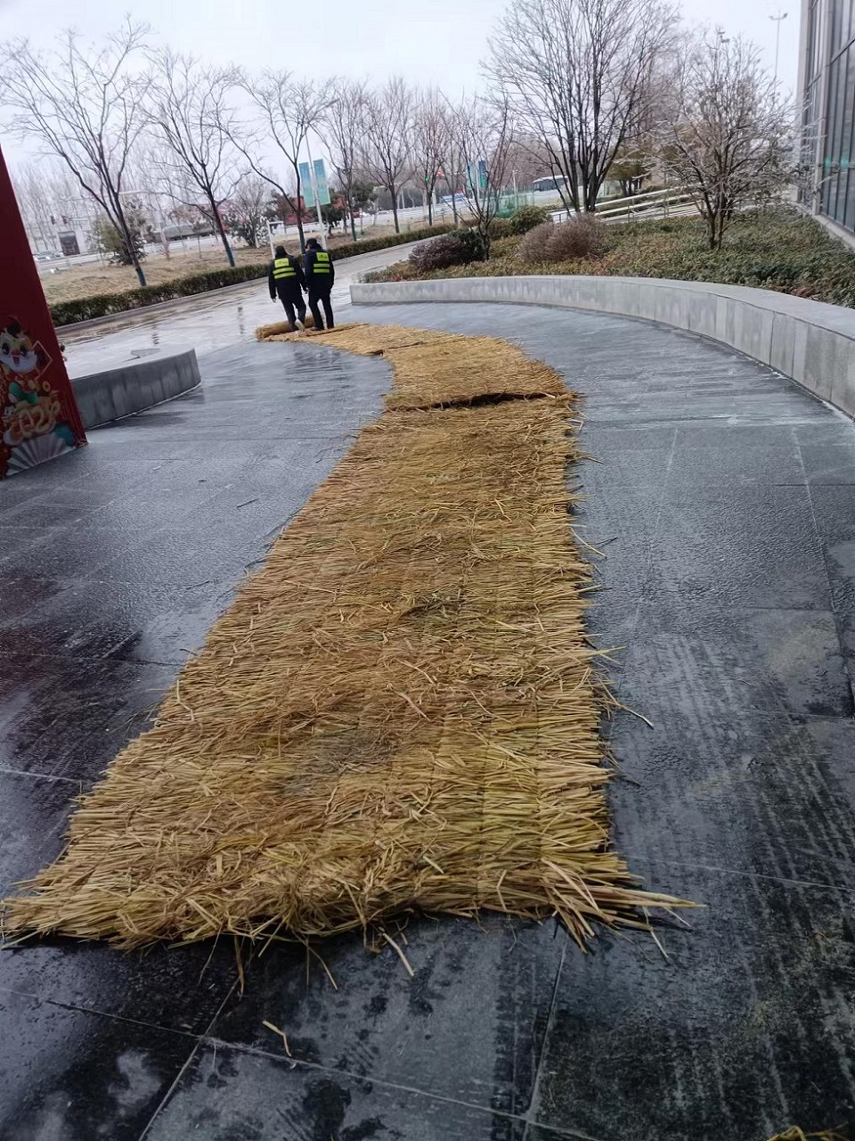 通湖物流園提前儲備防滑材料、融雪劑等應(yīng)急物資,在園區(qū)入口、坡道等重點路段鋪設(shè)防滑草墊,防止出現(xiàn)事故;做好園區(qū)內(nèi)物流企業(yè)安全宣教工作,督促企業(yè)提醒貨運司機(jī)注意應(yīng)對嚴(yán)寒冰凍天氣,確保行車安全。
