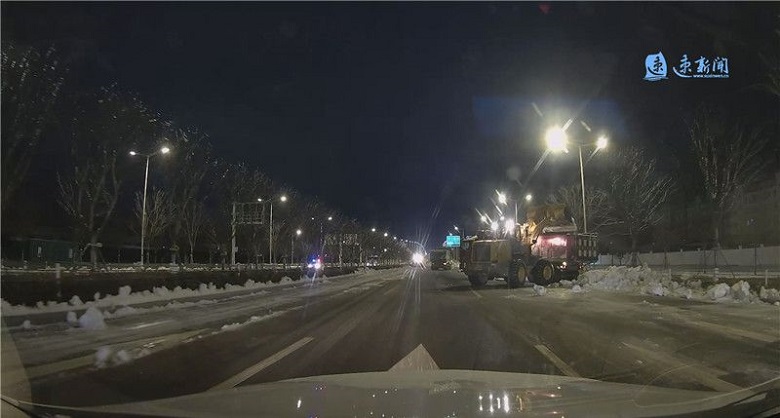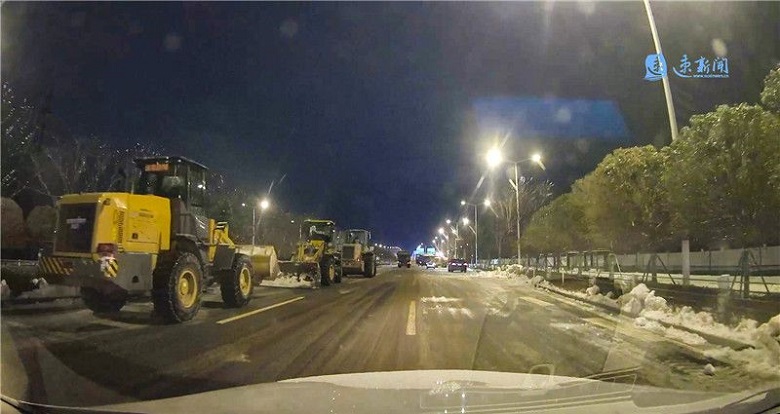據(jù)邱女士回憶,凌晨的天空仍是一片漆黑,但快速路上卻燈火通明,沿途不時可以看到正在清理道路積冰的工作人員和施工車輛。當時快速路不同路段已經(jīng)開辟出了1到2條車道供車輛正常行駛。